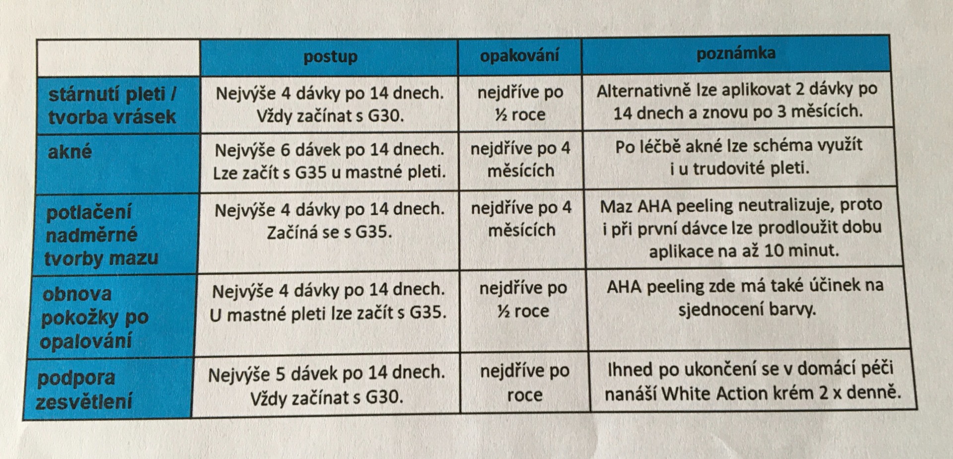 - 5 - 14 dnů před aplikací je vhodné používat G10 zjemňující emulzi